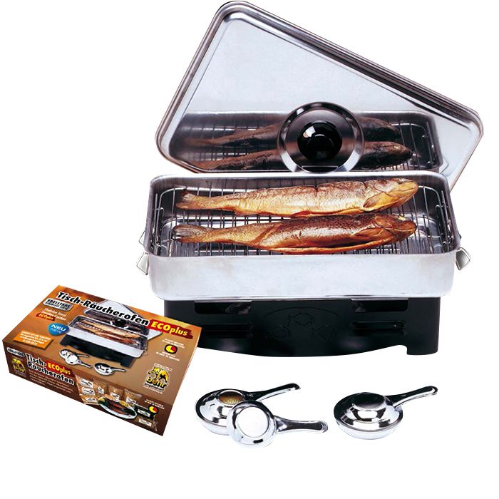 Avec le nouveau four à grillades de fumage en acier inoxydable de Behr, fumer et griller du poisson et de la viande en toute sécurité alimentaire est désormais encore plus facile. Le nouveau four à grillades de fumage en acier inoxydable est juste de la bonne taille et offre suffisamment d'espace pour accueillir jusqu'à 8 truites. Sa hauteur est plus généreuse que celle des modèles traditionnels. La distance entre les deux grilles chromées assure un fumage confortable même pour les poissons à dos haut. Un curseur de sortie de fumée réglable sur la poignée du couvercle et deux brûleurs doubles avec couvercle assurent une chaleur réglable de manière optimale. Les brûleurs peuvent également être commandés séparément. Livré dans une boîte de vente individuelle attrayante.