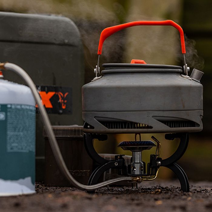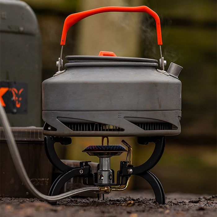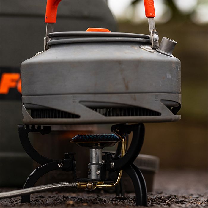Un réchaud compact qui se plie soigneusement pour se glisser dans une bouilloire Fox. Comprend un design à 3 pattes avec un raccord de tuyau à la bouteille de gaz pour plus de stabilité.