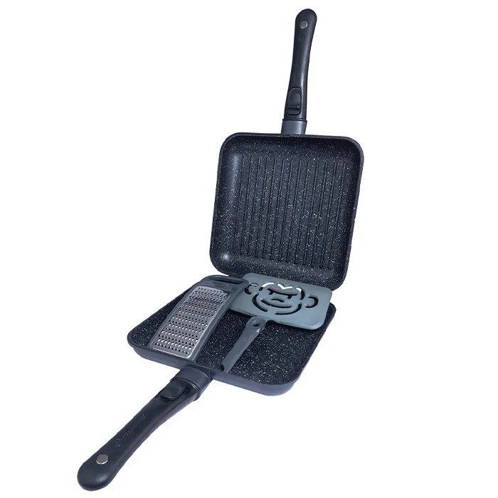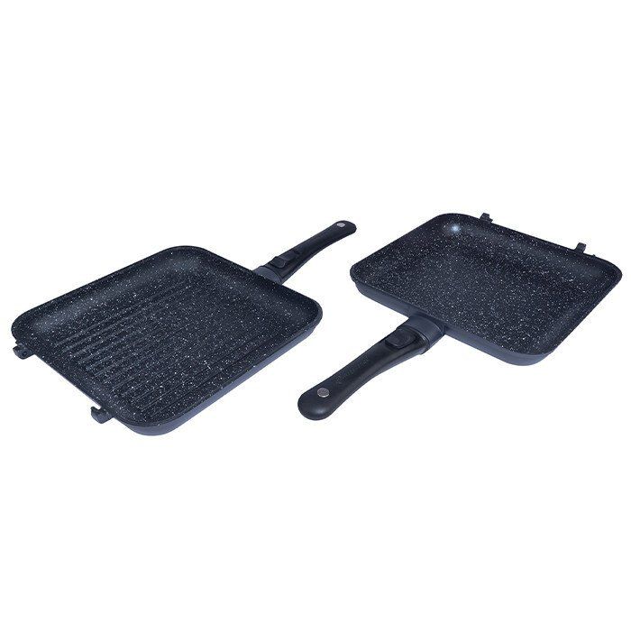 Le set casserole + pole Connect XXL Granite Edition est quip de poignes soft touch dmontables, et de charnires dtachables qui transforment votre casserole en deux ustensiles diffrents : une casserole fond plat, et une pole fond stri. Le set Casserole + Pole XXL est livr avec un grattoir fromage, et une grande spatule Q-Lock. Ce set est idal pour prparer de grosses omelettes, des pizzas, des ptes, des quiches, des full English breakfasts Parfait lorsque vous tes nombreux au bord de leau ! Grce notre nouveau revtement granit, nos poles et nos casseroles sont plus solides, plus durables, et leurs proprits anti-adhsives sen trouvent fortement amliores. Les ustensiles de cuisine entrent dans une nouvelle re