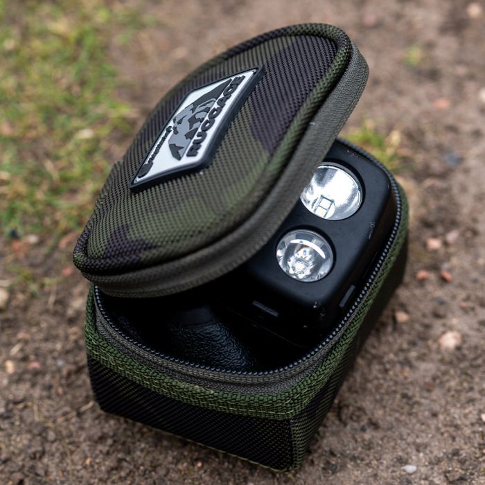 La Ruggage Compact Headtorch Case dispose de parois rigides, d’un intérieur doublé et matelassé, d’une fermeture à glissière double, et du camouflage exclusif RidgeMonkey à l’extérieur.