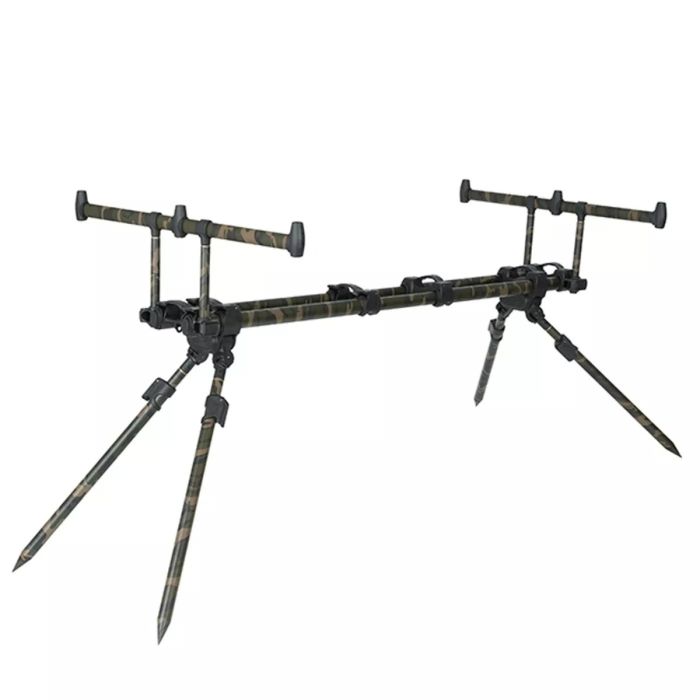 Le bon rod pod peut faire toute la différence dans votre mise en place de pêche. Parfait pour tous les types de terrains dont les grands lacs et rivières continentaux, le Rod Pod à 3 Cannes Fox Ranger MK2 Camo a la capacité d’être transformé depuis une configuration de pieds de pod Ranger standard à une configuration quadpod (trépied à 4 pieds). Ceci peut être réalisé en bougeant les pieds de chaque bout vers le milieu du cadre.
