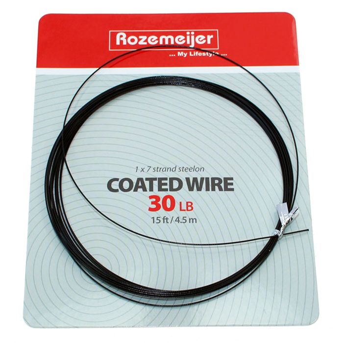 Fil d'acier 7 brins enrobé de noir pour réaliser les montages de votre choix. disponible en forces de traction 30lb et 50lb.