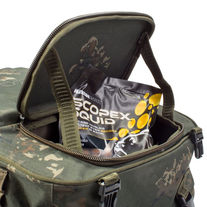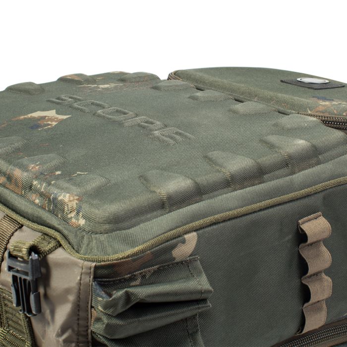 Le Sac à Dos Scope OPS Ruckall est équipé d’un compartiment supérieur en EVA à fermeture éclair qui s’ouvre pour montrer un bac qui garde tout vos objets essentiels à portée de main. Lorsqu’il est ouvert, un côté du ruckall a deux compartiments spacieux avec un diviseur raidi pour tenir votre matériel et votre kit pour votre session de pêche. Le côté opposé a un compartiment zippé avec un endroit plus petit sac isotherme pour garder l’appât et la nourriture au frais. Les bretelles sont totalement réglables et il a une base étanche à fermeture éclair qui peut cacher les bretelles pour les garder propres.