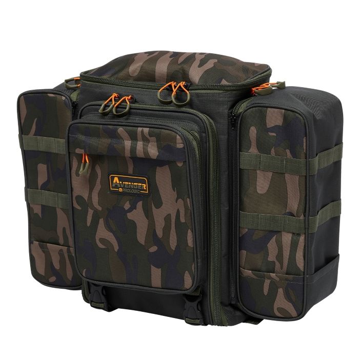 Le sac à dos Avenger comprend une section du milieu principale pour les grands objets tels que l’équipement de pêche, du matériel de sommeil, des vêtements, un compartiment zippé séparé sur le haut de la section du milieu pour les petits objets de matériel, en plus de deux pochettes de rangement détachables de chaque côté, idéales pour les boîtes de pêche et les objets à accès rapide.