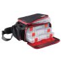 Le Sac à Leurres Mobile est un sac de pêche de taille moyenne qui contient 3 boîtes de rangement vides (de taille moyenne). Il possède une bandoulière réglable, 2 poches latérales pour les pinces/accessoires et une grande poche principale pour les boîtes de rangement. Sur le dessus, il y a une autre poche pour une petite boîte à leurres ou d'autres accessoires. Toutes les fermetures éclair sont de bonne qualité et le fond est très solide et imperméable. Sac idéal pour le pêcheur au leurre mobile : intérieur spacieux et taille compacte.