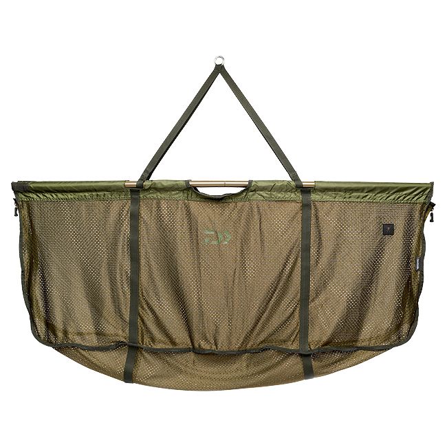 Sac de pesée pliable et peu encombrant avec barres en aluminium. Le maillage assure un écoulement et un séchage rapide et optimal de l'eau.