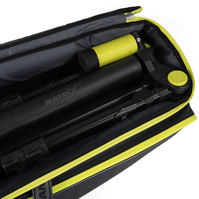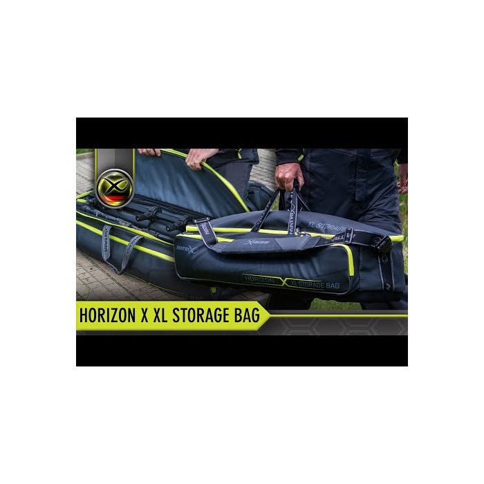 Parfait pour les articles longs supplémentaires de votre collection d'articles de pêche de match, le sac de rangement Matrix Horizon X XL peut accueillir des rouleaux de canne ou de grands accessoires de panier-siège.