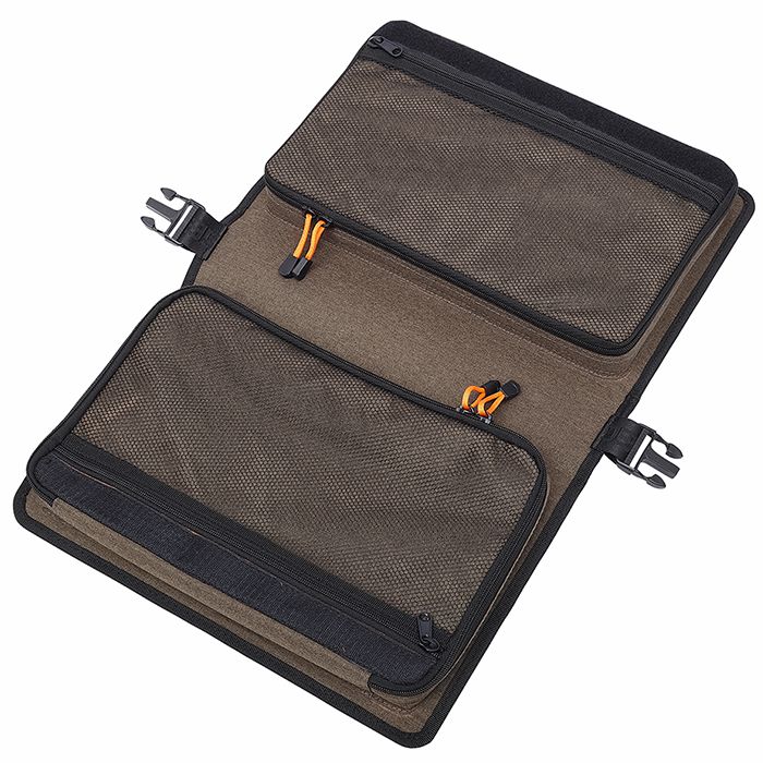 Restez polyvalent avec ce sac flip pratique à double face. Il comporte une boîte à leurres d'un côté pour les leurres et les têtes plombées et 12 sacs PE résistants pour les accessoires de l'autre côté. Deux poches latérales en filet offrent un espace supplémentaire pour les accessoires.