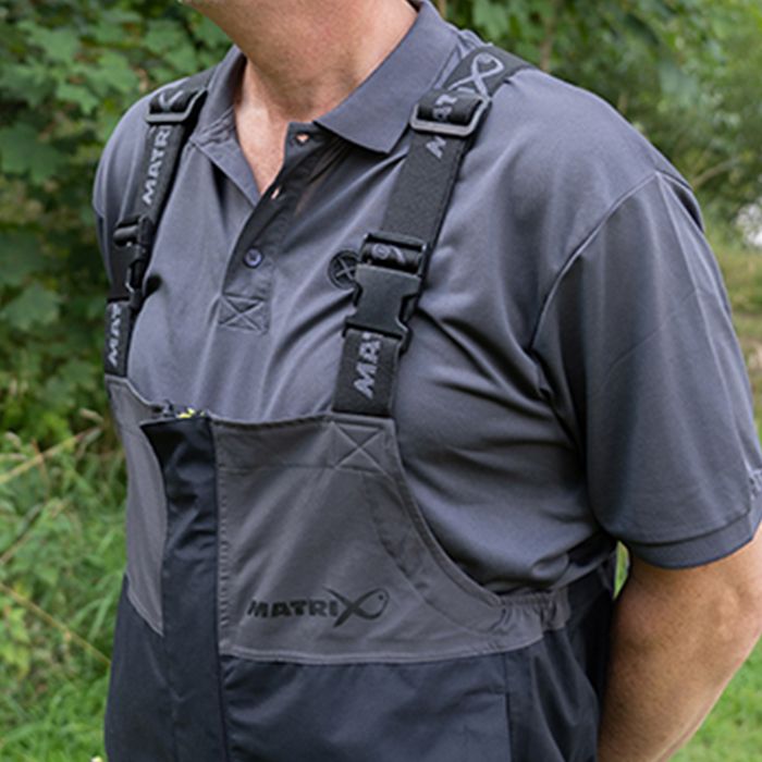 Les salopettes Tri-Couches Matrix 30K sont parfaites pour ceux qui veulent rester au sec et protégés lorsqu'ils pêchent.