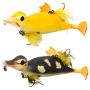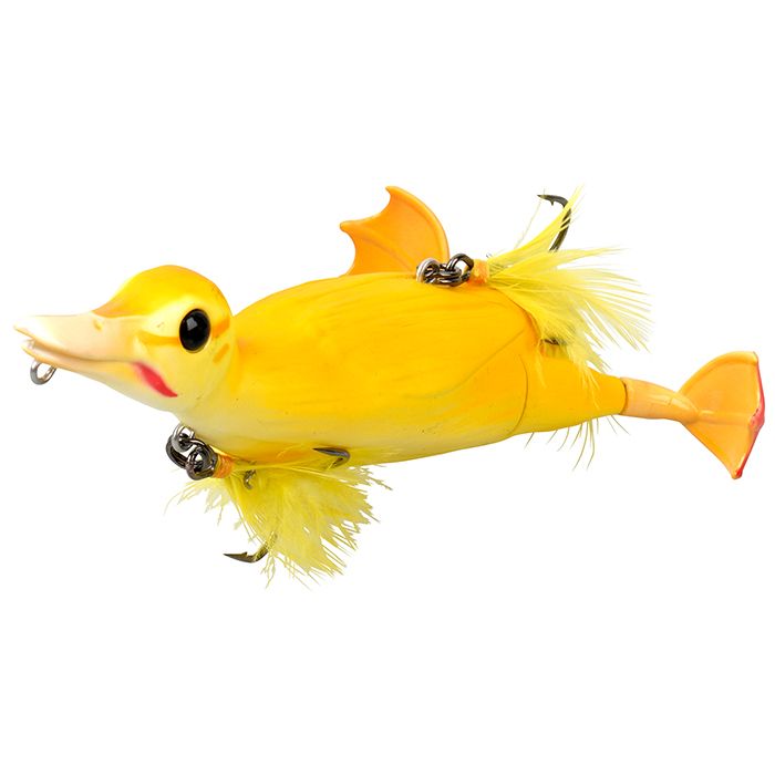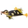 Un leurre d'imitation top water Duckling super réaliste chargé de fonctionnalités innovantes ! Les détails scannés en 3D tromperont même les poissons prédateurs les plus méfiants et vous assureront des attaques brutales ! Corps ABS dur ultra résistant avec des pieds semi souples et durables. Les pieds tournants donnent au leurre une incroyable action vive et éclaboussante, laissant une grande trace de bulles et attirant les poissons prédateurs à distance. Pour la pêche en eau libre, 2 hameçons triples recouverts de plumes, un sur la poitrine et un sur le dos, fixés au corps, assurent un bon taux d'accrochage. Pour la pêche dans des conditions difficiles, enlevez l'hameçon triple sur le ventre, le leurre est conçu de telle sorte qu'il se pose toujours sur le ventre avec l'hameçon triple exposé sur le dos. 2 styles d'action, attachez la ligne au bec, et le leurre courra avec une posture basse et discrète, comme un caneton essayant de se cacher et de s'échapper en même temps. Attachez la ligne à la poitrine et le leurre courra plus haut, avec une action de fuite plus panique. Le leurre peut être pêché rapidement ou lentement, avec une récupération régulière, de longues tractions, et imite un caneton de la manière la plus réaliste qui soit ! Superbe leurre pour le brochet, l'achigan, le maskinongé et les gros silures brutaux ! On dit qu'un grand coup de top water, compte pour 10 coups réguliers - attachez le Suicide Duck et découvrez-le !
