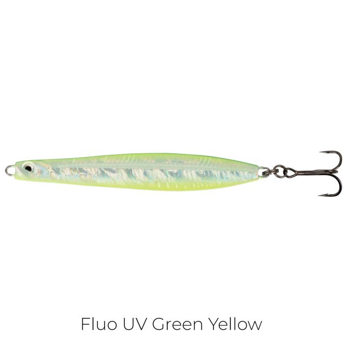 Le leurre Seeker est conçu pour des lancers à Ultra distance. même dans des conditions venteuses - mais la conception de la lame permet au leurre de nager de manière très vive et erratique. avec la plus incroyable rotation à 360 degrés au moindre arrêt de rotation - créant un flash incroyable dans l'eau. Chaque leurre est équipé d'une aiguille en Y ultra tranchante Savage Gear et d'un hameçon simple à bec large, ce qui permet au pêcheur de choisir l'hameçon le mieux adapté aux conditions données. ISP = Intense Strike Point. En remplissant les trous pré-percés sur le corps du leurre avec les pâtes époxydiques Night Glow et UV, nous avons pu créer le point de frappe le plus intense que vous ayez jamais vu ! Les points de frappe intenses attirent la truite de mer et le bar. et ils frappent fortement le leurre juste dans la section de la queue où se trouve l'hameçon - assurant un superbe taux d'accrochage.
