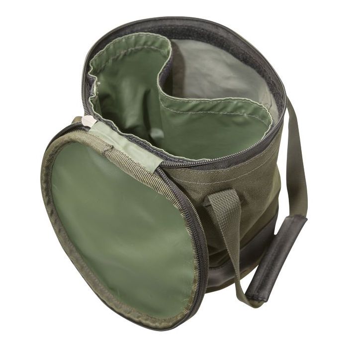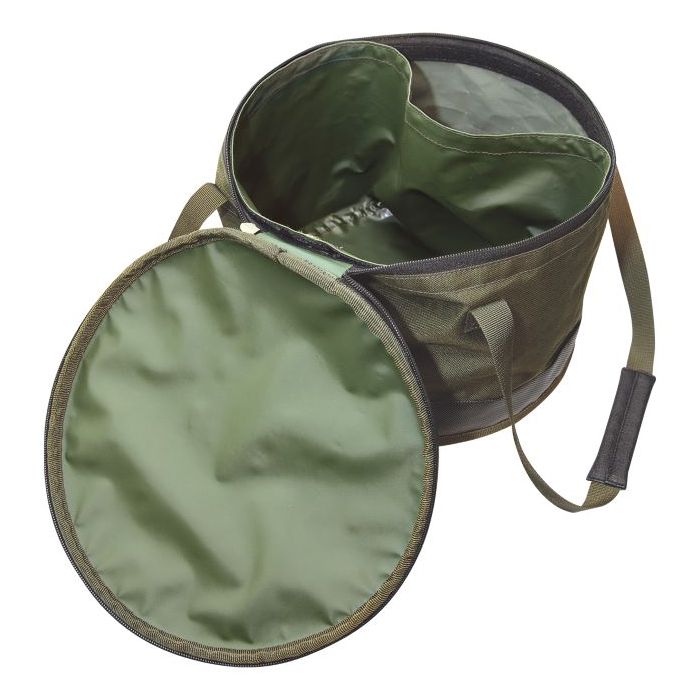 Les deux côtés du seau comportent une doublure intérieure imperméable amovible qui est intacte par une doublure de Velcro. Le fait de retirer la doublure intérieure imperméable le rend idéal pour les appâts moulus, les pellets, les bouillettes, et même les particules humides.