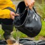 Ce petit seau étanche pliable permet de toujours avoir de l'eau à portée de