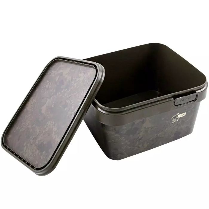 Seaux carrés robustes, résistants à la casse pour un rangement d’appât efficace. Finis dans le motif camo Nash Lake Legends. Disponibles en trois tailles.