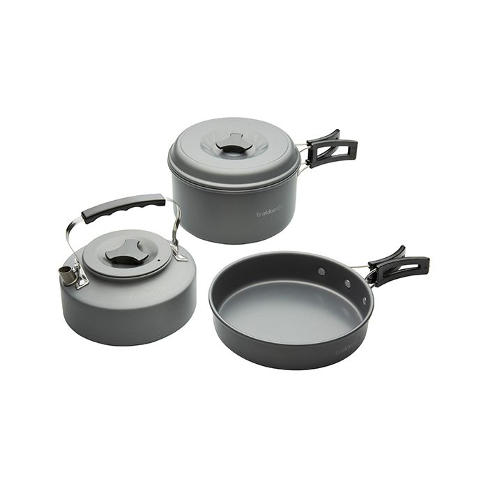 Comprenant une poêle, une casserole avec un couvercle, et une bouilloire, le Set de Cuisine Complet Armolife est parfait pour la vie sur la berge, vous permettant de cuisiner une variété de plats sans prendre trop de place. Avec des poignées pliables résistantes à la chaleur, la bouilloire loge dans la casserole avec la poêle par-dessus, et le tout loge dans le sac en maille fourni avec pour un rangement compact. Le set complet pèse seulement 651g et a été fabriqué à partir d’un aluminium léger anodisé pour vous donner une couleur gris raffiné.