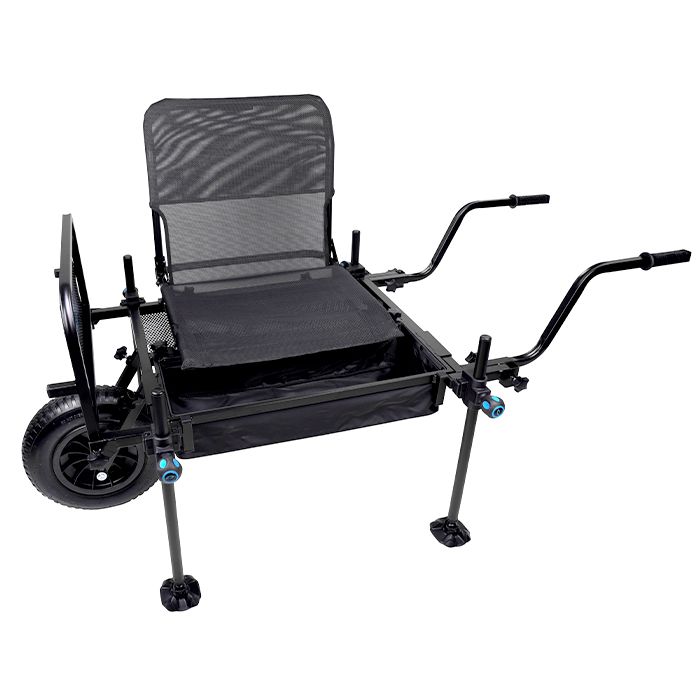 Ce siège Blackthorne Barrow combine le confort d'une chaise avec la stabilité d'un caisson de siège ou d'une plateforme et possède également un système de brouette avec des plateformes latérales intégrées. Le siège Barrow est donc idéal pour les pêcheurs à la ligne qui souhaitent assembler leur équipement de manière compacte afin de rendre les berges éloignées confortablement accessibles. Le siège rabattable est en plastique, il n'absorbe donc pas l'eau.