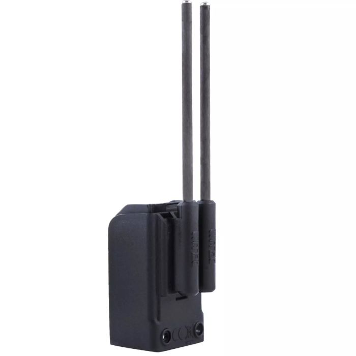 Les snag bars en carbone Safe-D V2 de Delkim sont conçus sur-mesure avec une porte de remplacement de batterie fixe moulée en nylon robuste, avec les supports pour les barres en carbone intégrés. Cela empêche les cannes d’être enlevé lorsque le climat est venteux ou lors d’une touche puissante. Les barres en carbone peuvent ensuite être ajoutées ou retirées selon les besoins grâce à la conception à glissière sur le derrière/porte pour batterie. Cela signifie que les supports restent attachés en permanence tout en permettant le montage des coques Delkim.