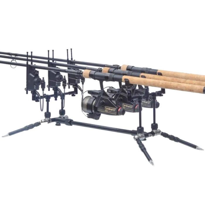 Compact incredibly good looking and black, the BlackLite Worldwide Pod answers the call for the beauty and functionality of our Stainless in a lightweight, alloy version... exactly what the market demands! Based on our Worldwide best seller, The BlackLite Worldwide delivers ‘Solar Performance’ at a fraction of the weight. Using Solar’s unique ratchet system (which we have kept in our DNA Stainless Steel so as not mark with the extended usage the Pod is designed for), the height is adjustable, along with the length and the width to answer most fishing situations. The uprights are ‘goalpost style’, delivering incredible rigidity to the Buzzer Bars. Plus, securig points front and back mean it is not going anywhere! The BlackLite Worldwide Pod is supplied with a pair of 3-rod adjustable buzzer bars to give you the complete covert, compact set[1]up you demand!