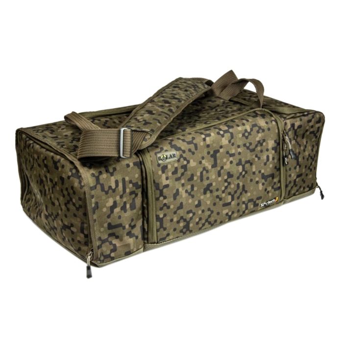 The SP C-Tech Travel Bag is a very practical garment bag. Features a full-size internal stink pocket to accommodate both clean and dirty clothes. Or store shoes and clothing separately but in the same bag. It is the ideal size for a weekday session, or to take your fishing clothes and work clothes separately for a weekday night of fishing! The clothing bag is equipped with a self-ventilating AirStrap for ultimate wearing comfort. Made in Solar's unique SolarCam camo pattern. Made from Solar's exclusive and “Industry First” G-Tex material. G-Tex is made from recycled bottles & packaging, produced with low carbon emissions, creating an incredibly strong and durable product. G-Tex is certified* to minimize the impact on the environment and your equipment.