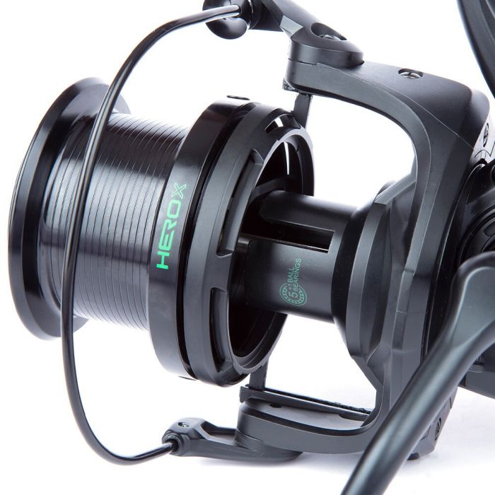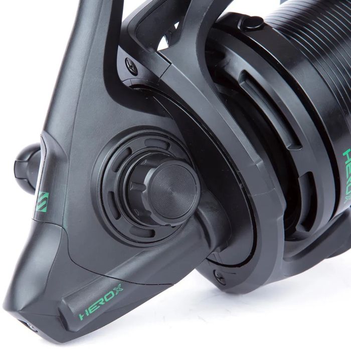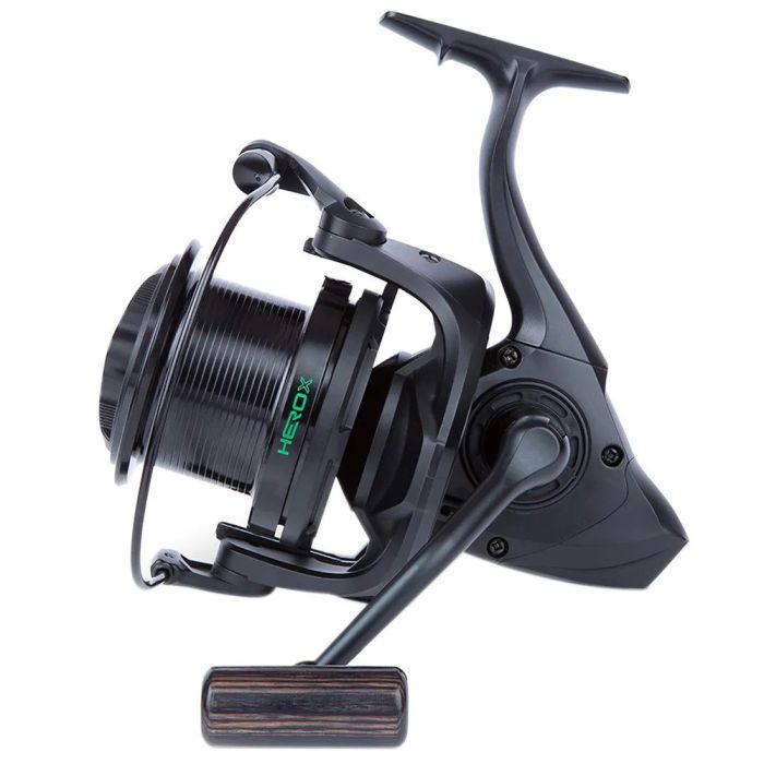 HEROX est une gamme de moulinets élégants, robustes et de grande capacité conçue pour le carpiste et le pêcheur spécialisé pour affronter toutes les conditions. Fabriqué selon des spécifications élevées et doté d'une transmission à vis sans fin ultra-douce ; Ce mécanisme permet d’avoir un enroulement croisé et parfait de la ligne. Notre engrenage Heli Coil offre un rangement de fils ultra-plat pour des performances de lancer fluides et une pose de ligne impeccable. Construit à partir de graphite léger ; le corps et le rotor intègrent une protection de ligne de rotor flottante, qui aide à éviter tout enchevêtrement. L'élégante finition noire mate, la poignée en aluminium anodisé CNC noir et le corps en bois foncé respirent la qualité. La bobine est équipée de deux clips de ligne captifs à ressort E-Z à fort impact qui aideront à la précision lors du lancer à distance. Les autres caractéristiques comprennent des roulements à billes 5 + 1, un rapport de démultiplication de 4,6:1 (1,10m) et un rouleau surdimensionné sans torsion. De plus, le système de frein ultra-doux Quick-Torque facilitera grandement le contrôle lorsque vous combattrez de gros poissons.