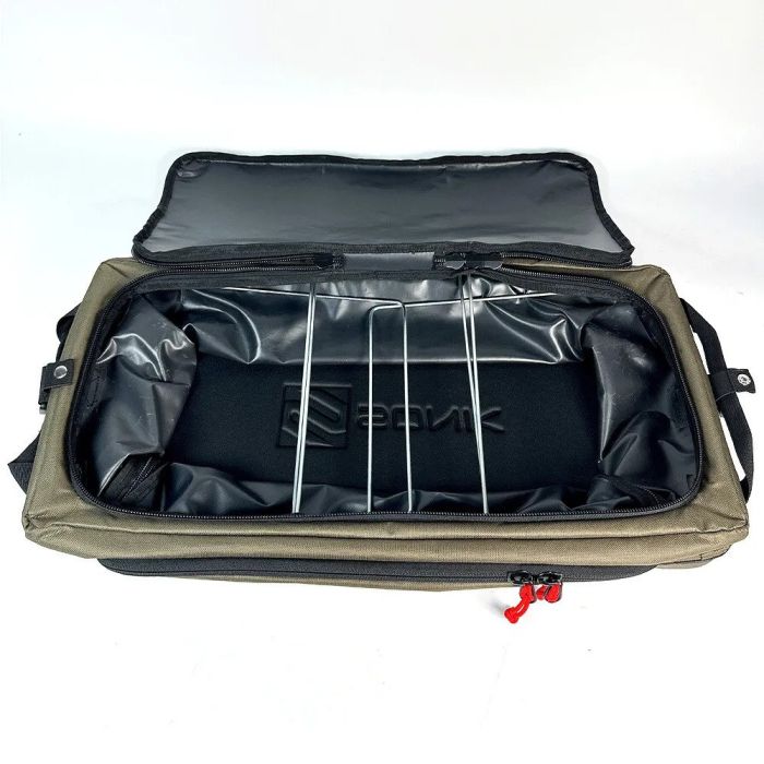 The SONIK STORZ™ luggage brings a new concept to modular fishing kit storage. All of the STORZ™ range are designed to be modular and stackable but also rugged and built to last. They feature our new RIGIDZ™ internal steel frame that provides support so that these bags can stack on top of each other to create many different storage layout options. The range is split into two height and three length options. All STORZ™ LOW products have a height of 22cm which is perfect for under bedchair storage. Heavy duty waterproof EVA bases and side grab handles make these bags ideal for sliding underneath your bedchair. It also makes them perfect for middle or top tier options when you want to stack your STORZ™ system. The other STORZ™ models all have a height of 32cm; these are great for general all-round storage options and as base units for when you want a stacked storage unit. Lengths are split into three options of 20, 40 and 60cm which allow you to create all sorts of modular layout options. To complete the range are two tabletop products which are compatible with the 40 and 60cm sizes respectively. These are great for turning your STORZ™ system into a full bivvy table unit when required.