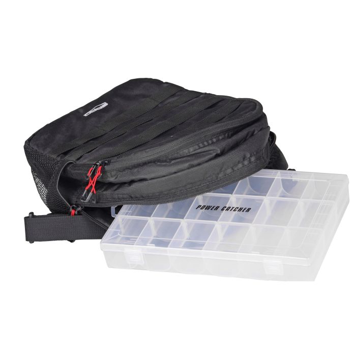 Ce sac de pêche est essentiel pour emporter léger. Le sac de pêche en bandoulière Spro Powercatcher possède des bandes de sangles à l'avant qui peuvent accueillir vos accessoires, un porte-pince et des anneaux en D. Il y a également une poche latérale pour votre boîte à pêche Power catcher (27,5x18x4,2cm).