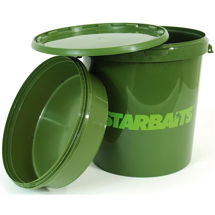 Seau principal de 33 litres + bassin de 7,9 litres + couvercle scellable s'emboîtant tous avec le couvercle s'adaptant à la fois au seau principal et au bassin.