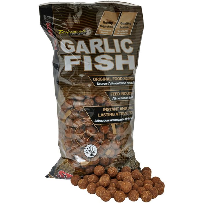 Toutes les recettes de la série Concept contiennent des substances purement naturelles sans utilisation d'arômes chimiques, de colorants ou d'autres ingrédients artificiels. Elles sont développées spécialement pour la capture des grosses carpes. Garlic Fish associe un arôme et un goût d'ail prononcé à des ingrédients de poisson de première qualité, tels que des farines de poisson sélectionnées, un mélange d'huiles de poisson ou un extrait de poisson soluble à haute teneur en protéines. L'huile essentielle d'ail pure ajoute un parfum d'ail tout à fait naturel aux bouillettes et, en outre, elle commence à se libérer, même dans des conditions plus froides, dès qu'elle touche l'eau. Grâce à l'attractant en poudre d'ail et aux sels minéraux, les bouillettes ont un goût spécifique d'ail et de sel, qui rend les carpes extraordinaires. De par sa composition, la bouillette est très digeste et il n'y a donc pas d'effet de satiété même lors de campagnes de nourrissage de longue durée. Nous recommandons le Poisson à l'ail dans les eaux plus chaudes, lorsqu'il y a une meilleure dissolution des composants du poisson, notamment des huiles de poisson.
