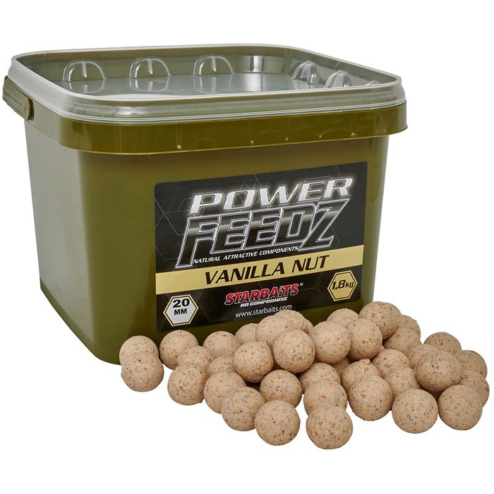 La série de bouillettes Power Feedz reprend les recettes de la série classique Feedz, qui est basée sur des ingrédients purement naturels, notamment à base de noix, d'un mélange de graines et de farine de poisson. Cependant, la série POWER contient également des arômes synthétiques spéciaux pour augmenter l'attractivité olfactive et gustative, ce qui permettra d'attirer plus rapidement les poissons vers le lieu de nourrissage. Saveur Vanille / Noix.