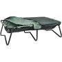 Grand plateau rembourré pour la carpe. Il possède un cadre solide et durable, ce qui le rend très stable. Il est parfaitement rembourré avec deux trous de maille pour l'évacuation de l'eau. Une housse en velcro est également incluse. Celle-ci sert à calmer le poisson lorsqu'il est laissé sur le tapis et l'empêche de glisser hors du plateau. Le tapis est léger, facile à plier et à transporter. Un sac de transport est inclus. Dimensions lxlxh 100x67x31 cm, poids 3,8 kg.