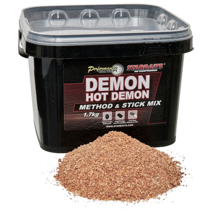 Méthode Mix chargée en ingrédients. Vous y trouverez des pellets broyés, une sélection premium de particules broyées et cuites, un mélange d'épices, des extraits de moules et de fruits de mer ou de la farine de poisson et des édulcorants. Sa composition est toujours basée sur la recette donnée de la Boilies Concept flavor. Method Mix est très collant et retient jusqu'à 30% de volume supplémentaire sous forme de pellets ajoutés, de bouillettes écrasées ou de particules. Peut également être utilisé pour préparer le Stick Mix pour PVA. Fourni dans un seau pratique avec couvercle. Saveur : HOT DEMON