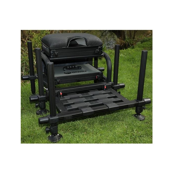 Fini de manière stylée avec une peinture matte, des devants de tiroirs contrastés à côtes et renforcés pour une performance rude contre toute météo et condition, le panier siège Stealth vous apporte de la pêche fiable lorsque vous en avez le plus besoin. La Plateforme à Haute Stabilité est équipée d’une stabilité à 6 pieds, avec quatre pieds à 36mm, avec des inserts télescopiques de 25mm, fournissant une stabilité et placement inégalés pour la boîte elle-même, et deux pieds supplémentaires qui soutiennent la plateforme repose-pied, vous donnant la confiance de pêcher une session active, de faire un élan pour ces lancers à distance dramatiques, et apportant votre ligne exactement où elle a besoin d’être, lorsque vous en avez besoin. Le repose-pied est aussi équipé d’une couverture antidérapage, pour plus de tranquillité.