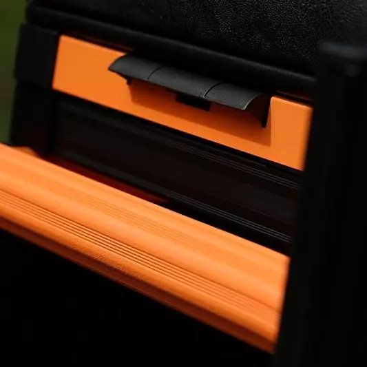 Conçue pour Guru par le fabricant mondialement renommé de station Rive, avec cette station vous en aurez pour votre argent. Il y a deux stations dans la gamme - Black Stealth et Guru Orange - qui partagent les mêmes caractéristiques fantastiques : plaque arrière personnalisée Team Guru, coussin de siège personnalisé, assise haut de gamme “éléphant” personnalisée et fabriquée en France, couvercle de boîte durable Team Guru, face de tiroir en acier inox peint à code couleur et une nouvelle finition de peinture mate résistante pour la Guru Orange et Black Stealth. Les deux sont fourni avec une cassette de rechange et un couvercle de transport, ce qui est nouveau et n'a jamais été fait auparavant par la Team Guru.