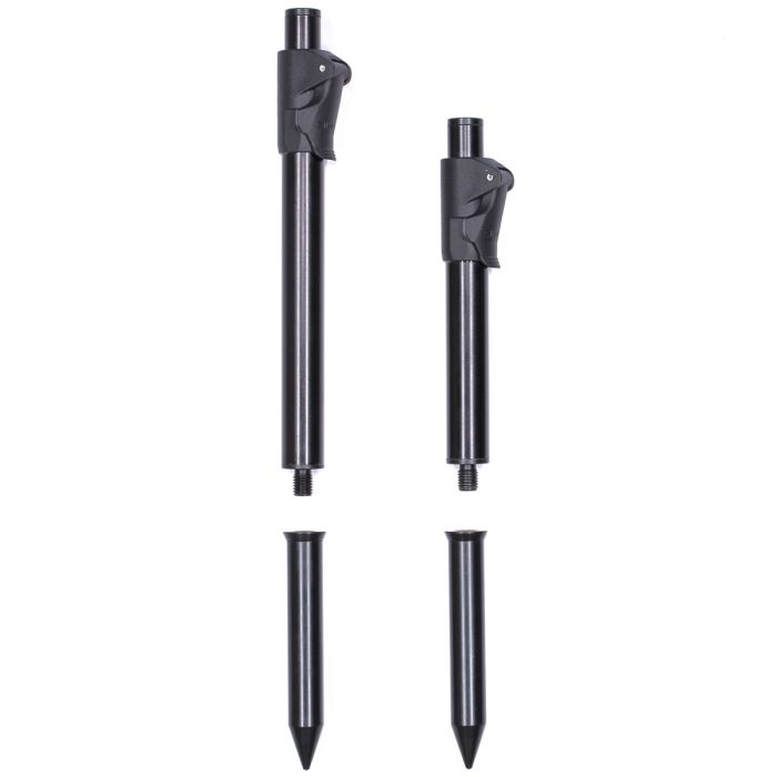 Fabriqués à partir d’aluminium 16/19mm haut calibre, puissant et léger. Finis avec une finition noire anodisée de qualité supérieure. Ils peuvent être réglés et sont faciles à engager et démonter, en verrouillant la section télescopique interne en place à la hauteur requise. Ils sont aussi dotés de pointes solides pour gérer le terrain le plus robuste.
