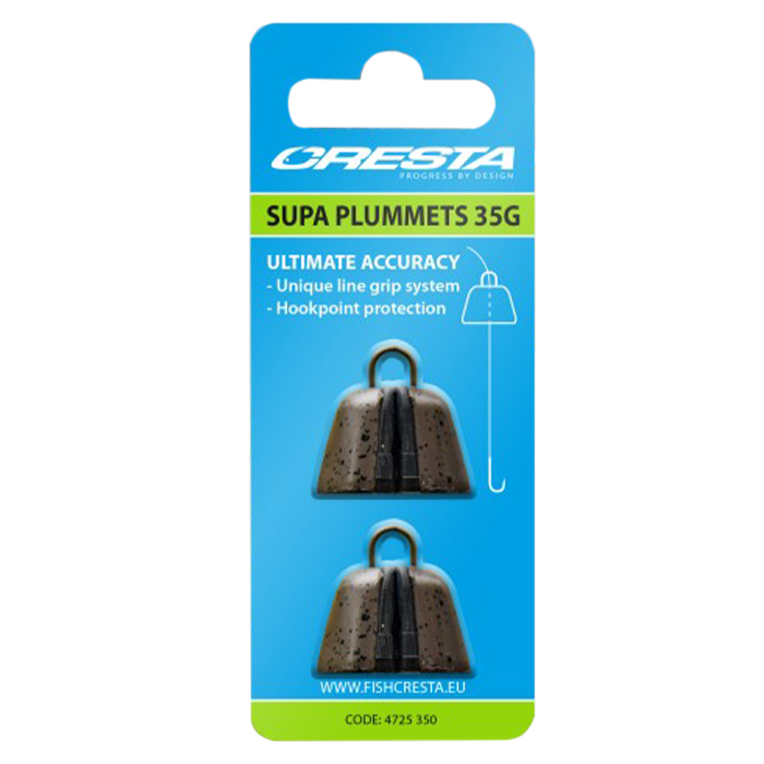 Les plummets Cresta Supa sont sans aucun doute les meilleurs de tous les temps ! Le plummet possède un insert souple unique couvrant toute sa hauteur protégeant ainsi la ligne et l'hameçon. Il en résulte un montage parfait pour mesurer la " profondeur morte " sur l'antenne du flotteur. Le grand œillet permet de l'utiliser facilement avec des hameçons de toutes tailles, avec ou sans bande d'amorce. Le plus grand avantage est que le Supa Plummet peut être placé dans n'importe quelle position sur la ligne au-dessus de l'hameçon. Il est alors possible de plomber votre nage, ce qui vous donne une mesure précise de la surprofondeur. Plus besoin de deviner la quantité de ligne présente sur le fond ! La version de 15 grammes est utile pour les élastiques les plus fins tandis que les versions de 25 et 35 grammes pour les élastiques plus lourds, les eaux plus profondes et le débit.