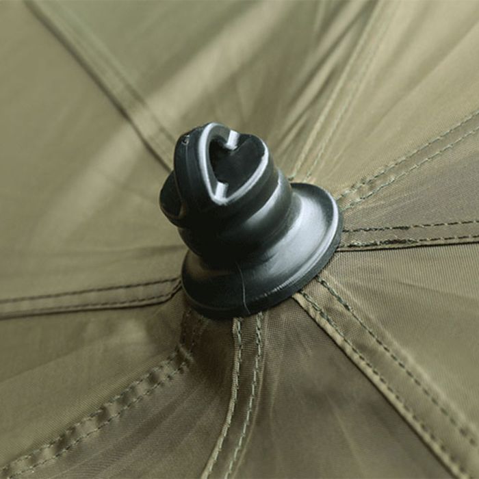Des jupes latérales rallongées vous abritent des courants d’air de la rive, tandis qu’un égout à l’avant pour permettre à la pluie de simplement s’enfoncer dans le sol, ce qui assure que vous resterez bien au sec, et que votre brolly ne succombe pas à la condensation. Avec une taille de 262cm x 178cm x 128cm, et pesant seulement 9kgm, ce brolly est une option d’abri confortable et pratique, et un bon choix si la décision de rester sur la rive toute la nuit risque de dépendre sur comment vous vous sentez une fois arrivé ; contrairement à un biwy, un brolly est rapide à monter, et assez compact pour ne pas vous causer trop de soucis quand vous l’emmenez avec vous « juste au cas où ».