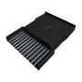 Le Kit contient : 5 panneaux, 1 plateau à poignée, 9 supports entiers, 12 demi-supports, 12 pieds en caoutchouc, 34 vis courtes, 2 vis longues.