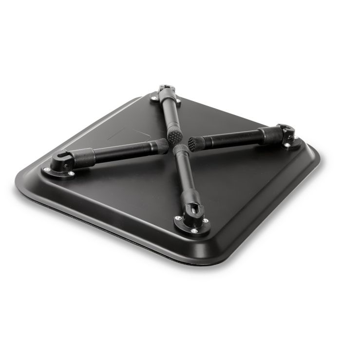 Les pieds pliables font de cette table un accompagnement propre et compacte à vos accessoires. Les pieds sont aussi réglables pour équilibrer sur des terrains irréguliers et pour des besoins de hauteurs différentes. Avec une finition à effet de carbone noir.