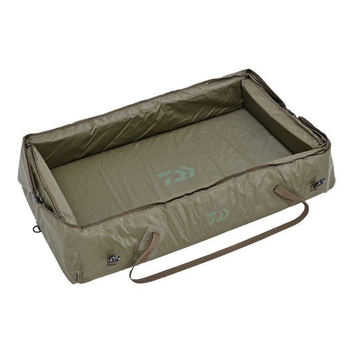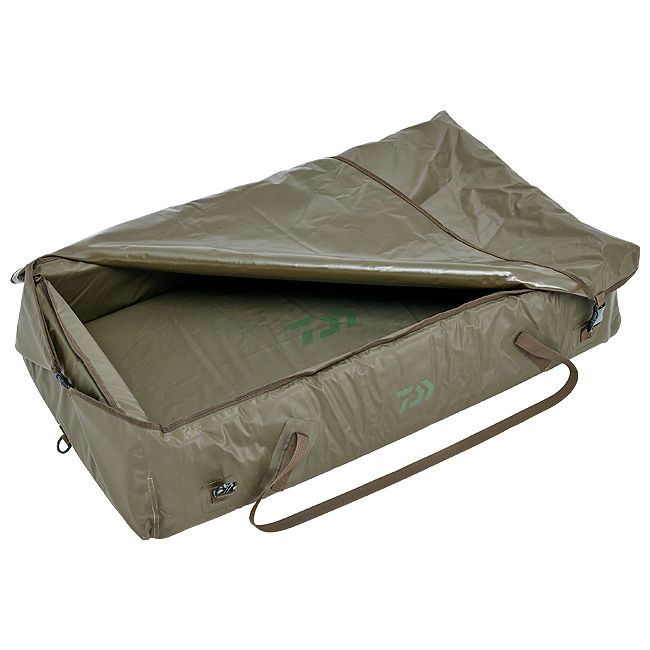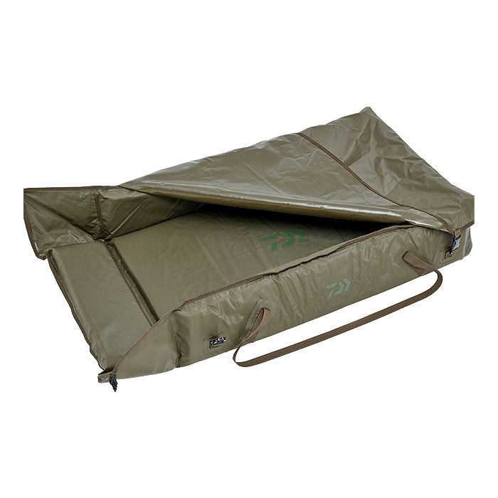 Grand tapis de réception imperméable, flottant et rembourré pour les libérations dans l'eau. Le matériau PVC anti-odeur se nettoie facilement. Le tapis se ferme par le haut pour éviter que le poisson s'échappe. Avec deux œillets sur le bas pour une fixation au sol. Équipé d'une longue poignée de portage pour un transport optimal au bord de l'eau.