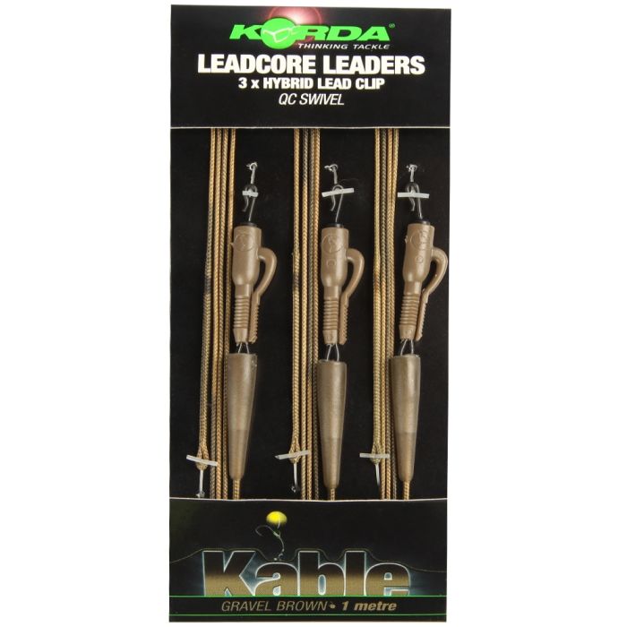 La dernière addition à la gamme de têtes de ligne leadcore incorpore notre Clip de Plomb QC Hybrid qui est équipé d’un émerillon intégralement moulé alors le plombs s'enlève facilement si le poisson que vous avez accroché se coince. Les caractéristiques Quick Change du clip vous aident à changer les bas de ligne facilement. Chaque tête de ligne est fabriqué à partir d’un mètre de leadcore camouflé Kable 50lbs avec une boucle épissée sur le bout. Disponible en couleurs weed/silt et gravel.