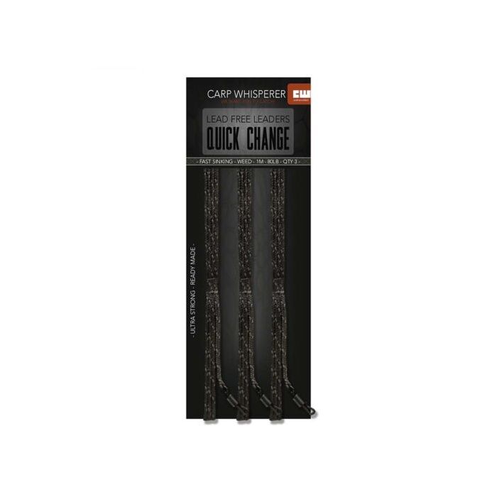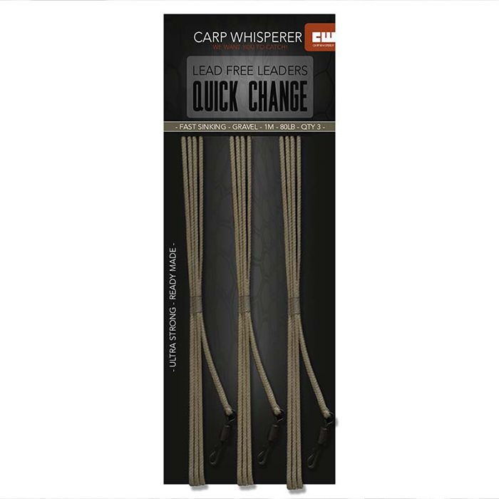 Le Quick change leader peut être utilisé à la fois pour le système de plomb en ligne et pour la pêche avec un clip de plomb. Cela rend ces carp leaders très polyvalents dans leur utilisation. Bien sûr équipé de notre système de changement rapide. Le remplacement d'un montage de pêche à la carpe devient alors un jeu d'enfant ! Nos bas de ligne pour la pêche à la carpe sont soigneusement noués à la main. Cela que vous pêchez avec un leader fiable assure qui coule rapidement et est très résistant à l'abrasion!