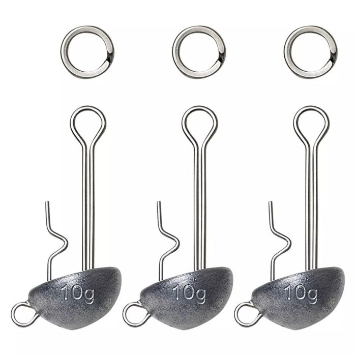 Les têtes plombées Punch vous permettent d’attacher le leurre souple pour la pêche en profondeur et permet au leurre d’émettre plus de vibrations, en tirant le leurre sur le fond avec le stinger à l'arrière. Percez la tête du montage à travers le front du leurre et ajoutez votre stinger préférée, puis raccorder le avec l'anneau brisé correspondant. Idéal pour les herring shads, les Real Eels, Goby shads, River Roach, etc.