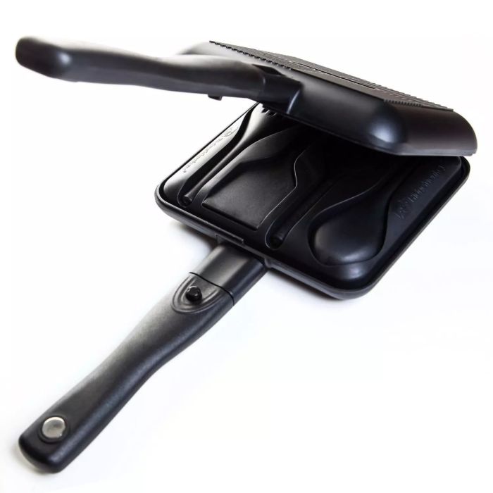 Un extérieur à rainures fournit un transfert de chaleur équilibré, vous donnant de la nourriture chaude et bien grillée à chaque fois. Les poignées au toucher froid se plient pour un rangement pratique, se verrouillant en place avec la fermeture magnétique, ce qui maintient votre grille-pain compact et protégé lors du transport.
