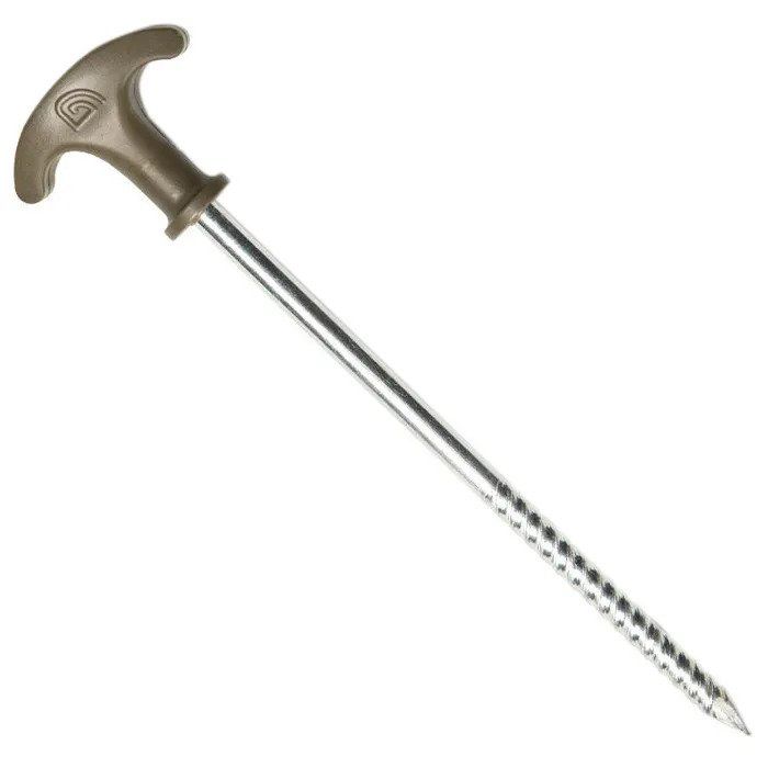 Trakker 8 Inch Fishing Peg Set, A super strong set of 10 screw point threaded pegs for securing you brolly or shelter. Each has a moulded plastic head so you can get a firm grip. Great if you've managed to loose a few and perfect for adding that extra layer of security in windy weather.