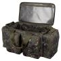 The large main compartment of the fishing carryall is lined and well-padded to accommodate and protect your gear in transit. Heavy-duty dual zips are present on the main compartment and all external pockets. The stiffened main compartment lid ensures the carryalls keep their shape and form when the contents inside has been removed. The lid of the carp fishing bag can be used as a bivvy table saving space inside your shelter. Internally there is a large zipped heavy-duty mesh pocket on the underside of the lid.