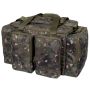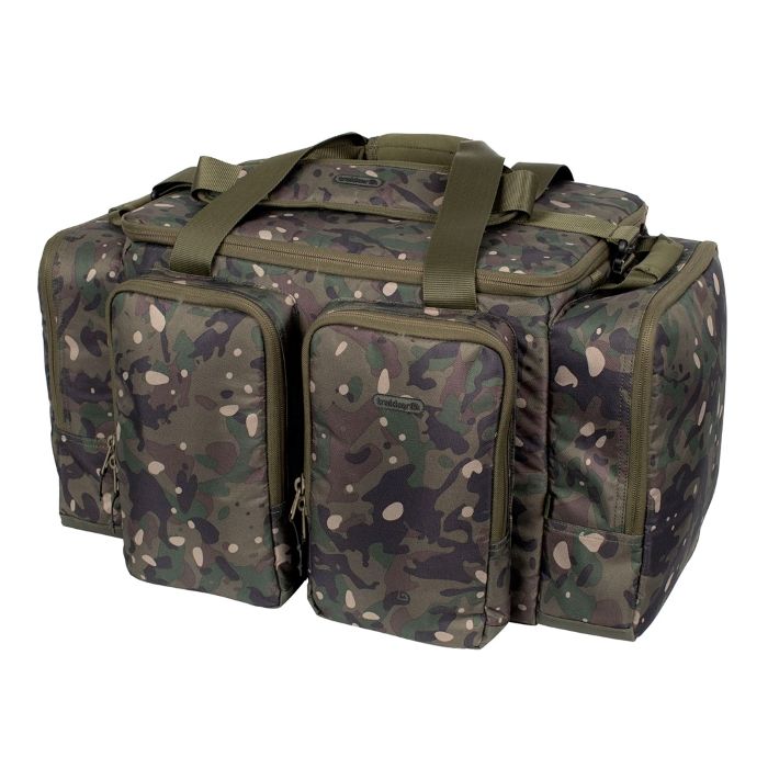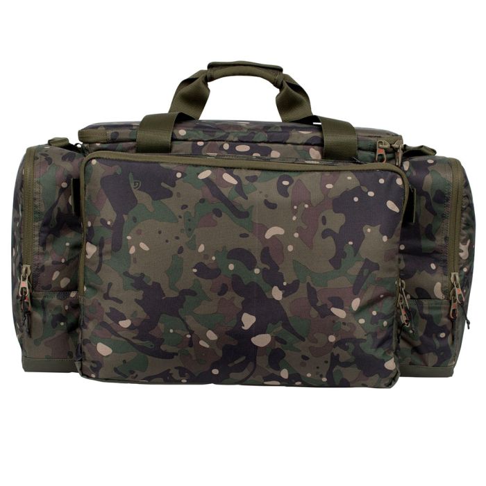 The large main compartment of the fishing carryall is lined and well-padded to accommodate and protect your gear in transit. Heavy-duty dual zips are present on the main compartment and all external pockets. The stiffened main compartment lid ensures the carryalls keep their shape and form when the contents inside has been removed. The lid of the carp fishing bag can be used as a bivvy table saving space inside your shelter. Internally there is a large zipped heavy-duty mesh pocket on the underside of the lid.