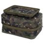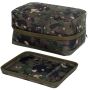 The internal mesh pockets in the main bag use heavy-duty mesh making it ideal to store rig tools like baiting needles without worry of them getting caught up in conventional mesh. The zipped central divider has a large, zipped mesh pocket one side and six large end tackle pockets on the other. The NXC Rig-R Box can accommodate most medium sized tackle boxes currently available and rig boards making it a hugely versatile storage solution, totally customisable to your requirements. The pouch is heavily padded for protection, has a hard-wearing waterproof base and Neoprene grab handle for transport in and out of larger bags.
