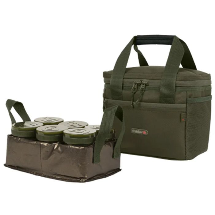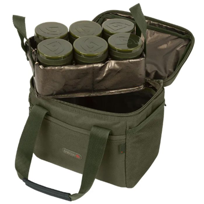 Le sac NXG Bait Bag offre la solution parfaite pour garder toutes vos esches préférées fraiches et bien organisées. Le sac est fourni avec six pots étanches, à l'intérieur d'un plateau amovible isolé, ce qui vous permet de ranger des appâts ou des accessoires supplémentaires dans le compartiment principal, qui est doublé avec notre doublure thermique haute densité Chilla et un intérieur en PVC amovible qui peut être facilement nettoyé. Une poche frontale zippée permet de ranger des articles supplémentaires tels que des sacs PVA et d'autres petits accessoires. Les poches latérales en filet offrent un rangement supplémentaire à ce sac compact. Les fermetures éclair principales à double sens, le tissu résistant N-Dura et une base imperméable assurent que vos appâts seront en parfait état au bord de l'eau !