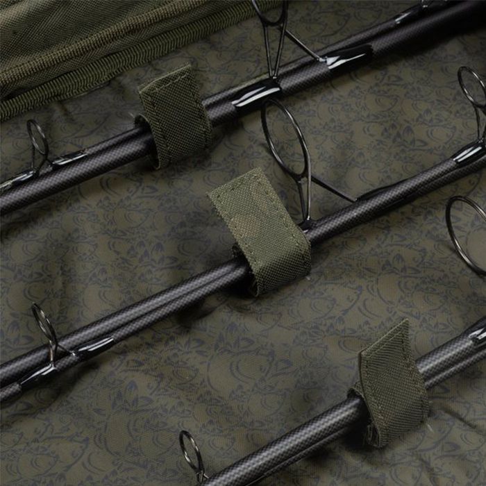 Fabriqué à partir d'un matériau solide et durable et d'une base imperméable et nettoyable, le Transporteur de Cannes Nash Dwarf peut sécuriser vos cannes à pêche et vos moulinets grâce à un couvercle à velcro en dessous pour un accès facile au stockage interne. Ce sac est également doté de poches de protection de l'extrémité de la canne pour éviter tout accident.