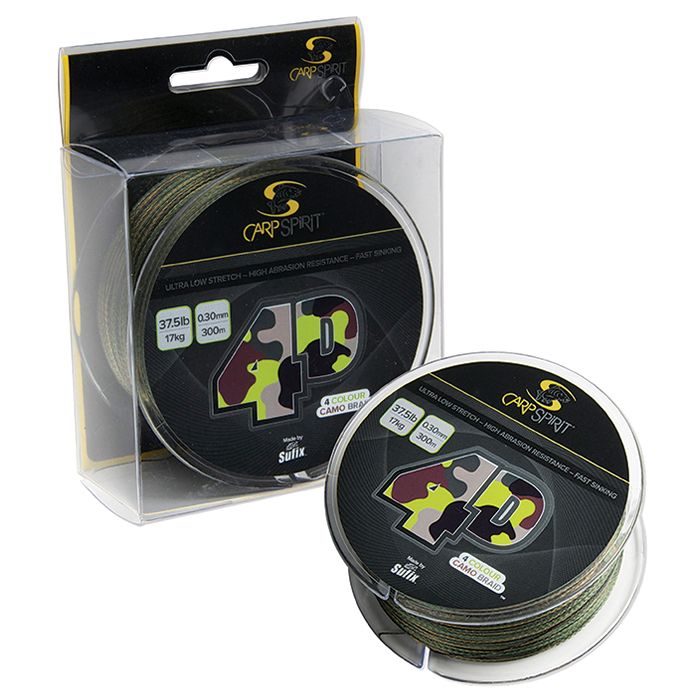 La tresse de camo de Carp Spirit 4D ™ est fabriquée à partir de Mélange Dyneema® / Polyester, entraînant un excellent équilibre de valeur et de performance. P>